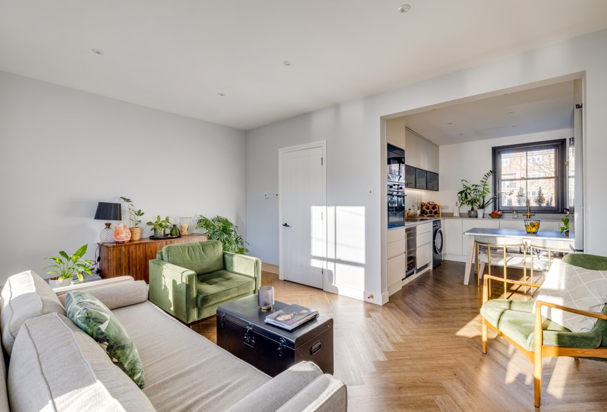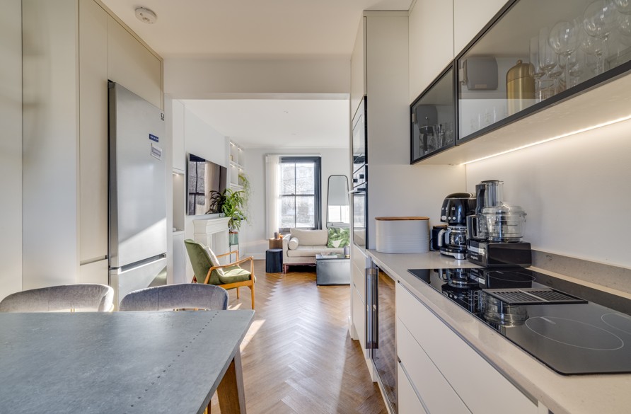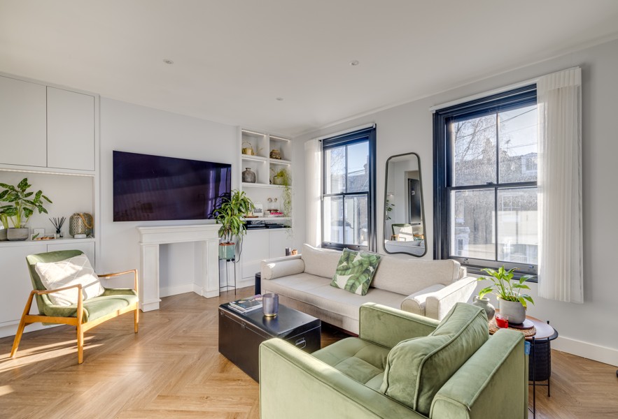 A perfectly finished, two double bedroom split level period conversion with a private roof terrace.