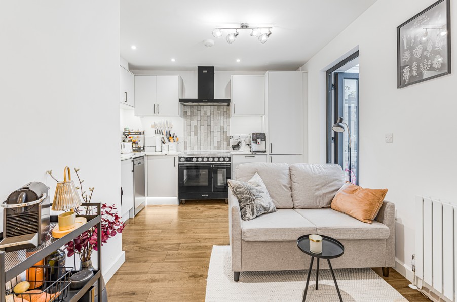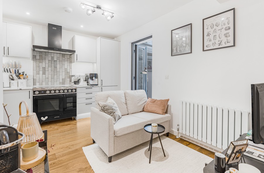 This bright and characterful garden apartment offers a well-designed layout in a highly convenient central location. Entered via a private front door, the property opens into a bay-fronted double bedroom at the front, leading through to a fitted open-plan kitchen. Both bedrooms are generous doubles and share a well-appointed bathroom. To the rear, a dining room or conservatory provides attractive additional living space, with doors opening onto a larger-than-average private garden.