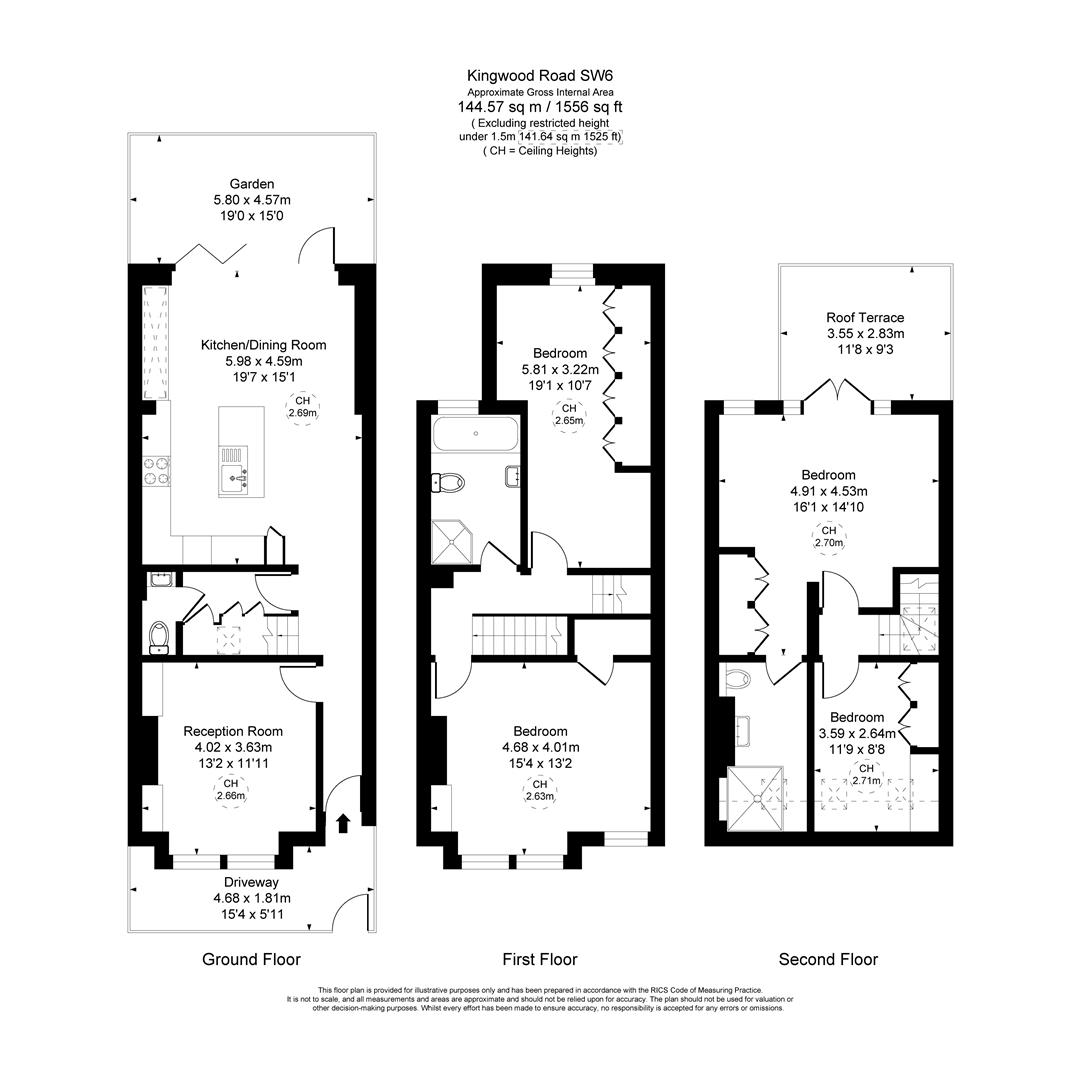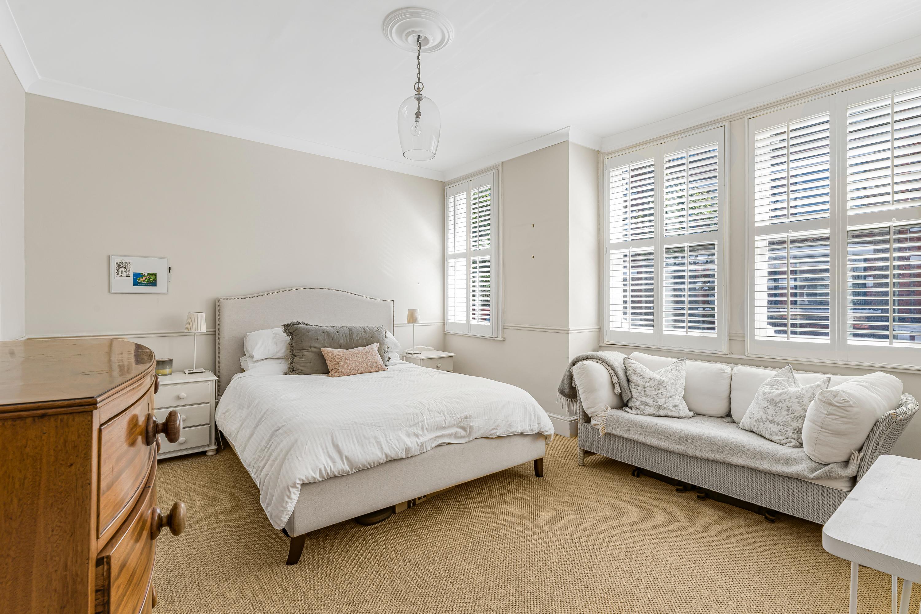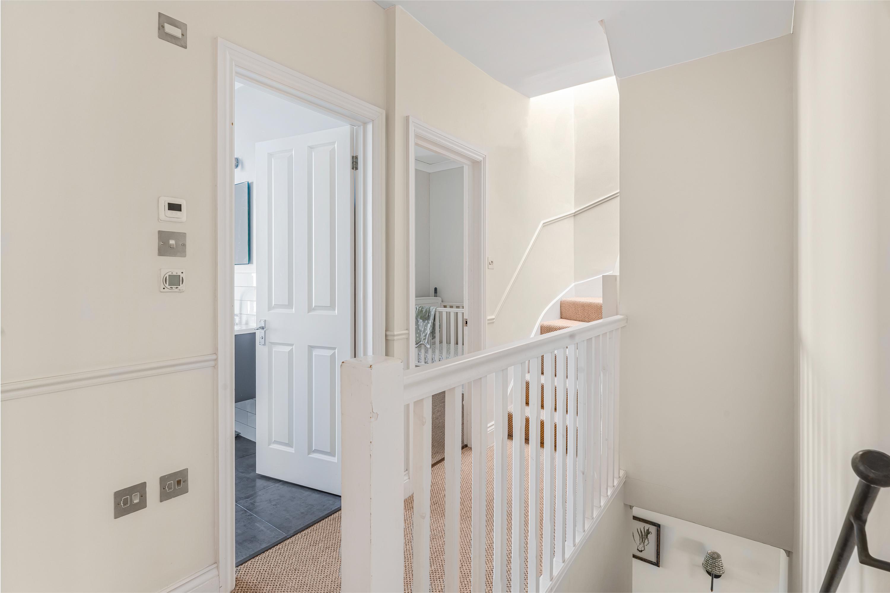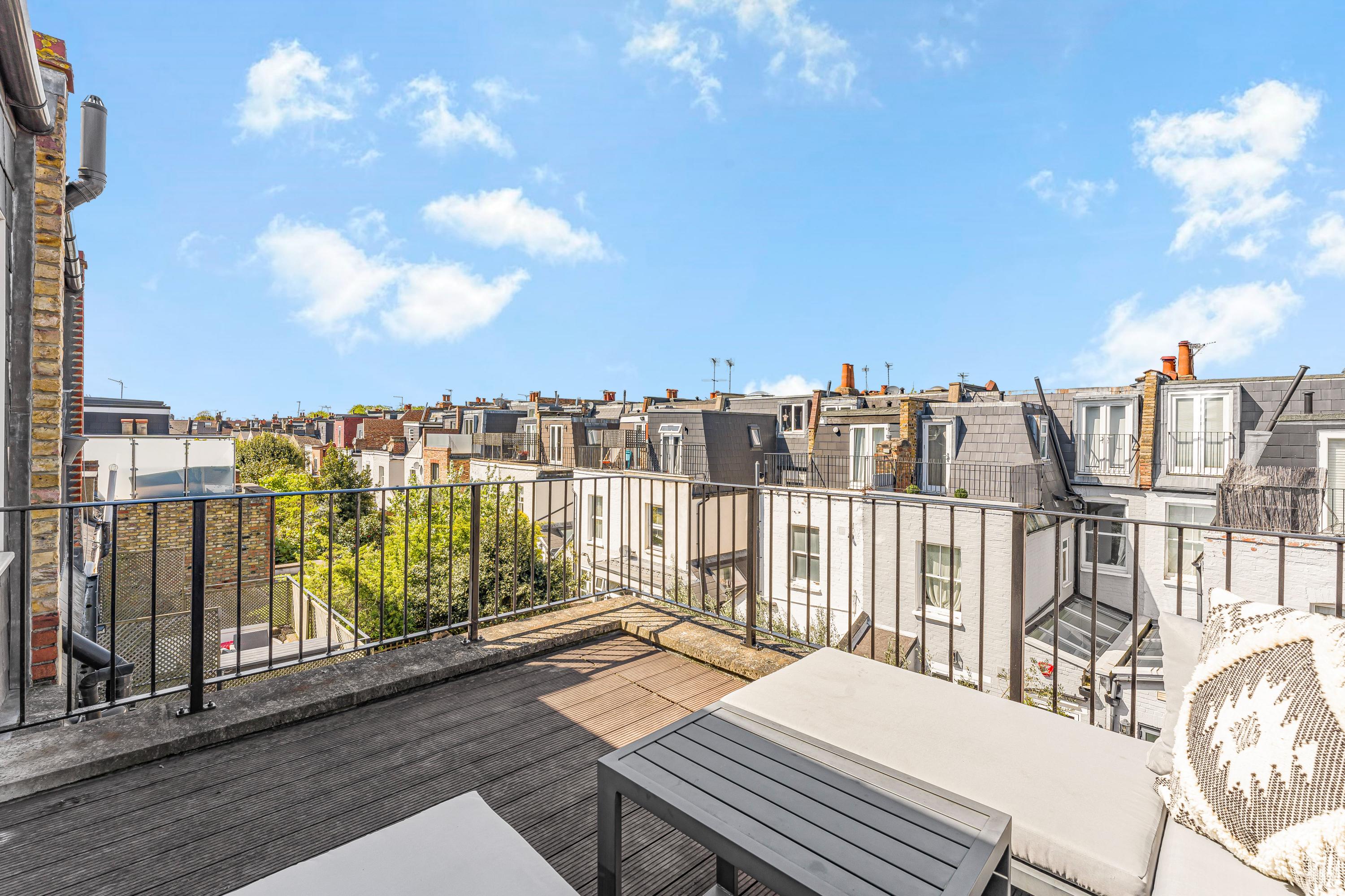 The four bedrooms are all good doubles, with the principal bedroom benefiting from a private roof terrace. Two bathrooms are located between the bedrooms and they all have ample storage.