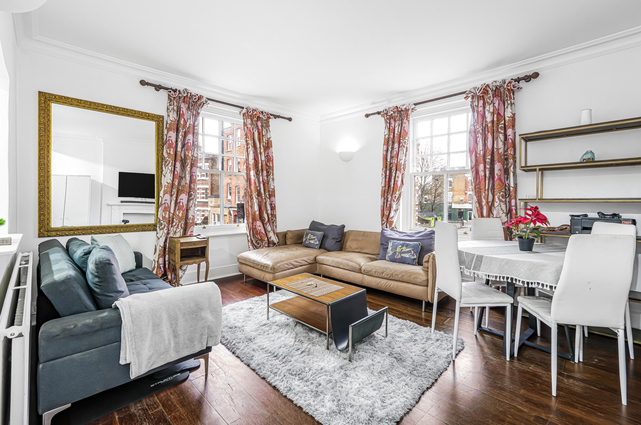 A bright and spacious, two double bedroom split level period conversion in the Munster Village. The property has a large roof terrace and has its own entrance.