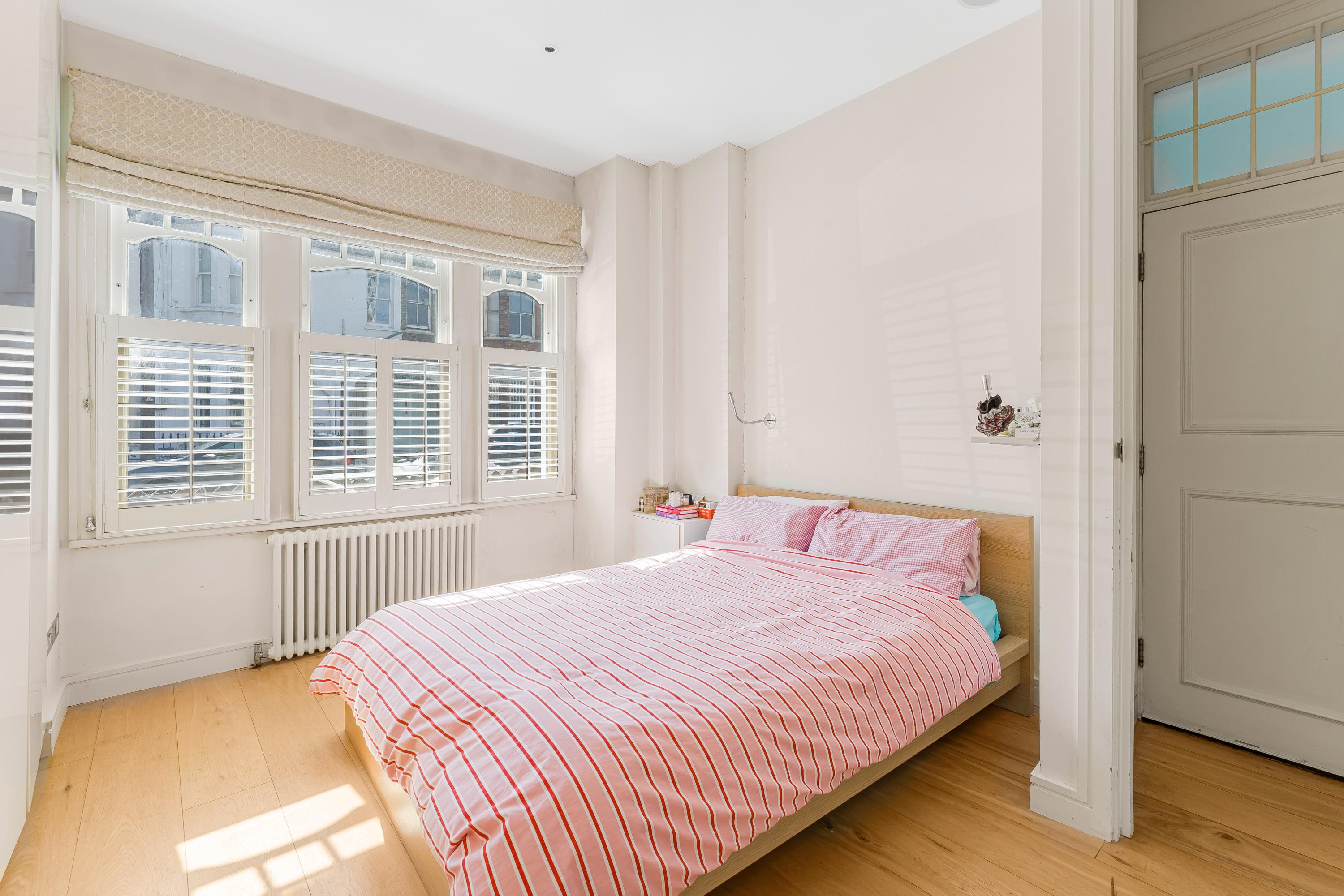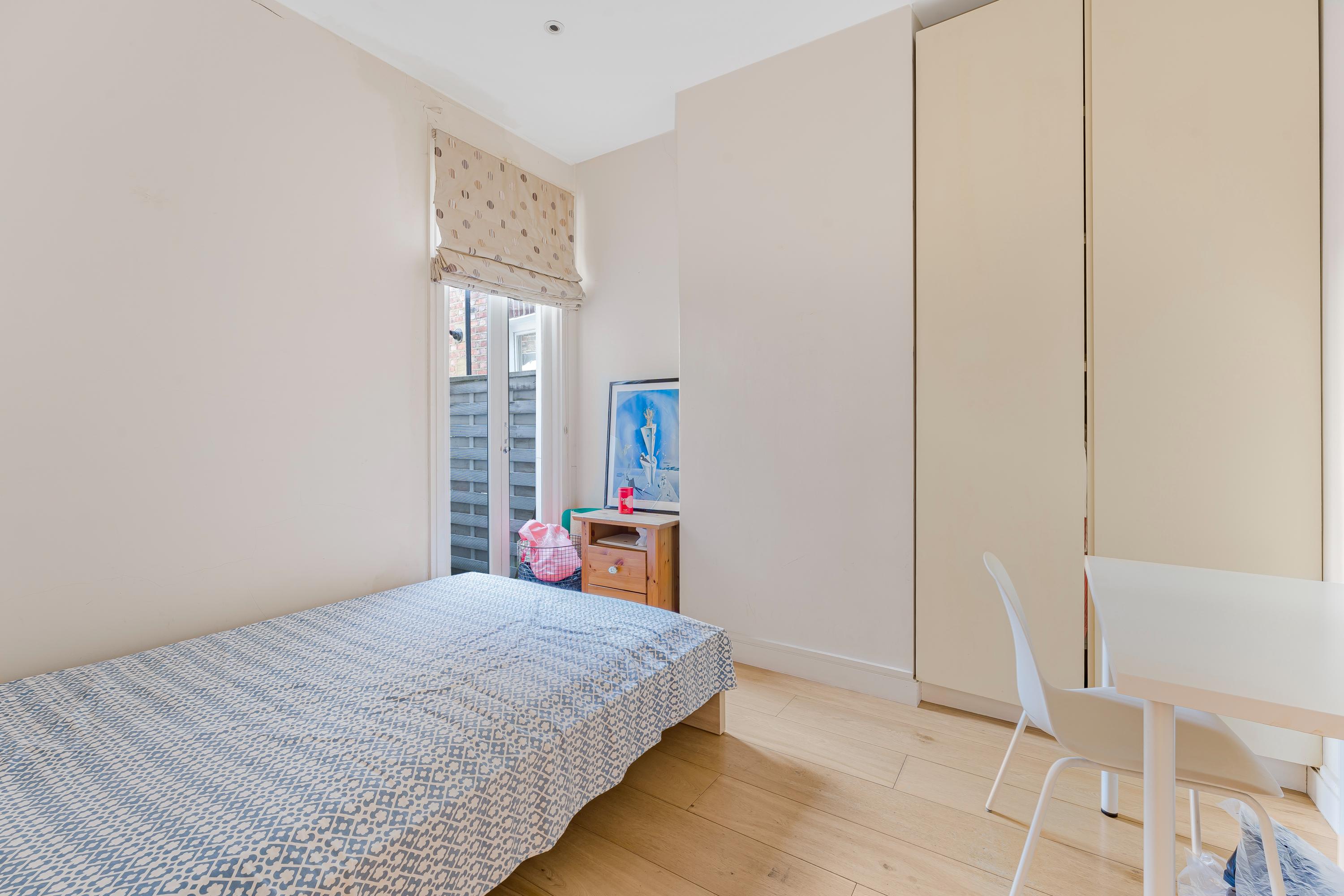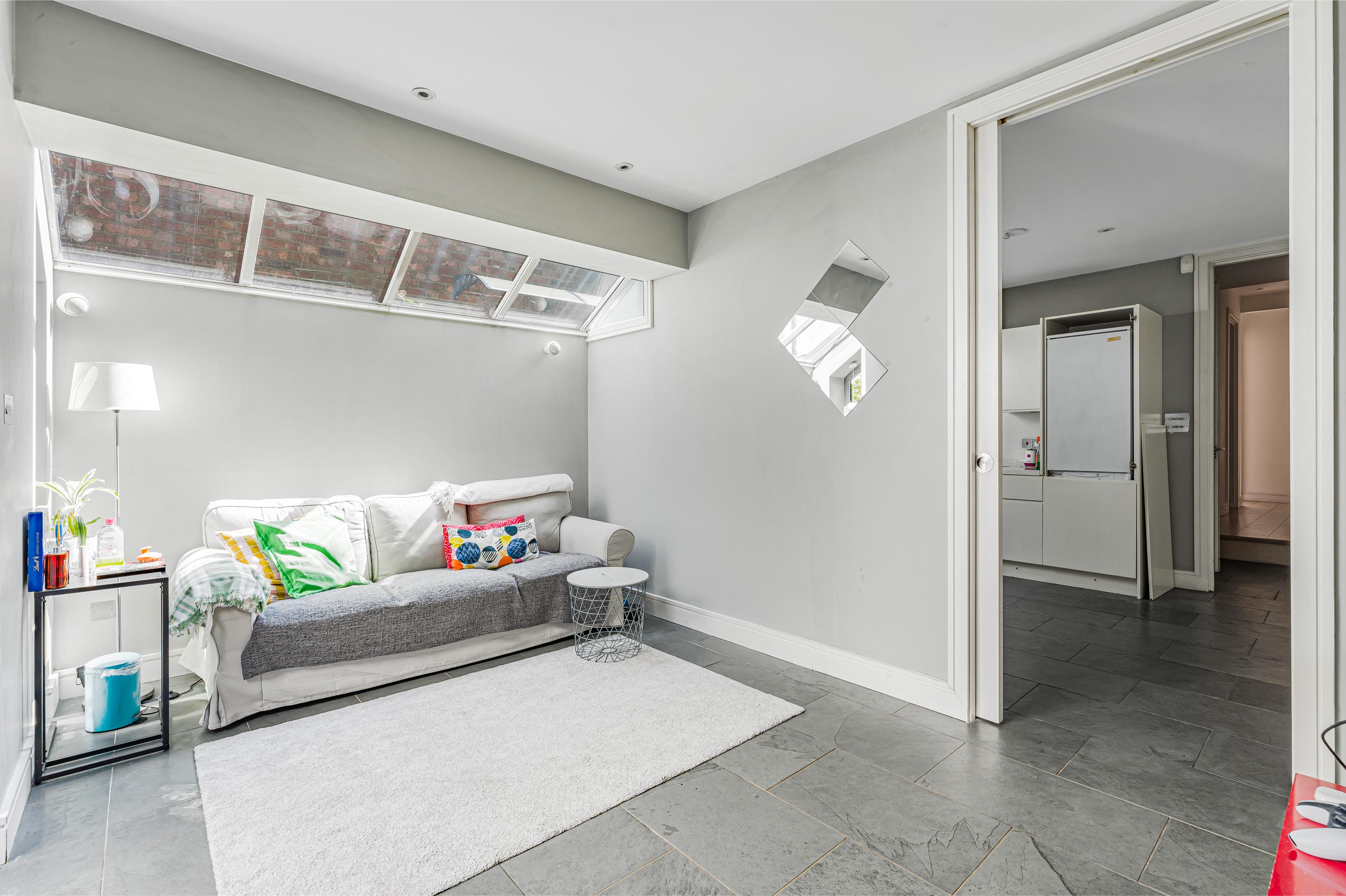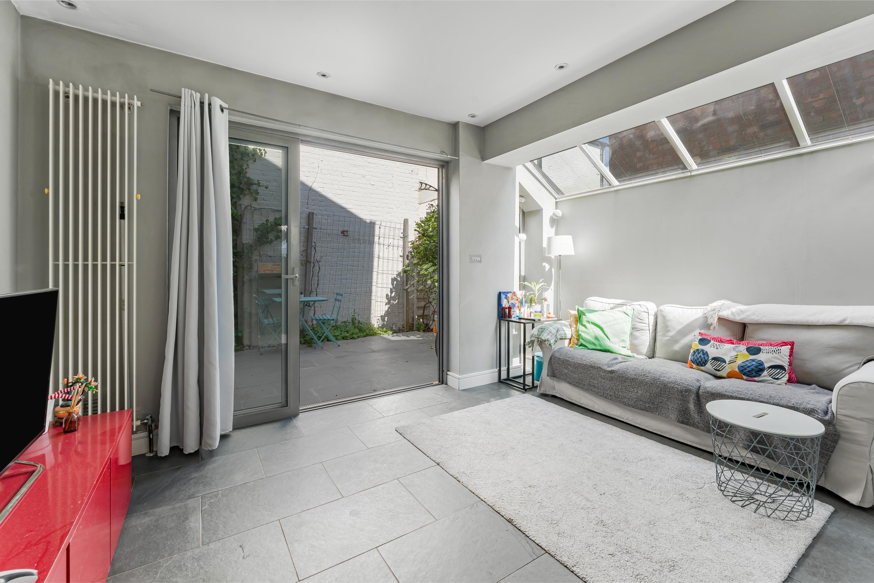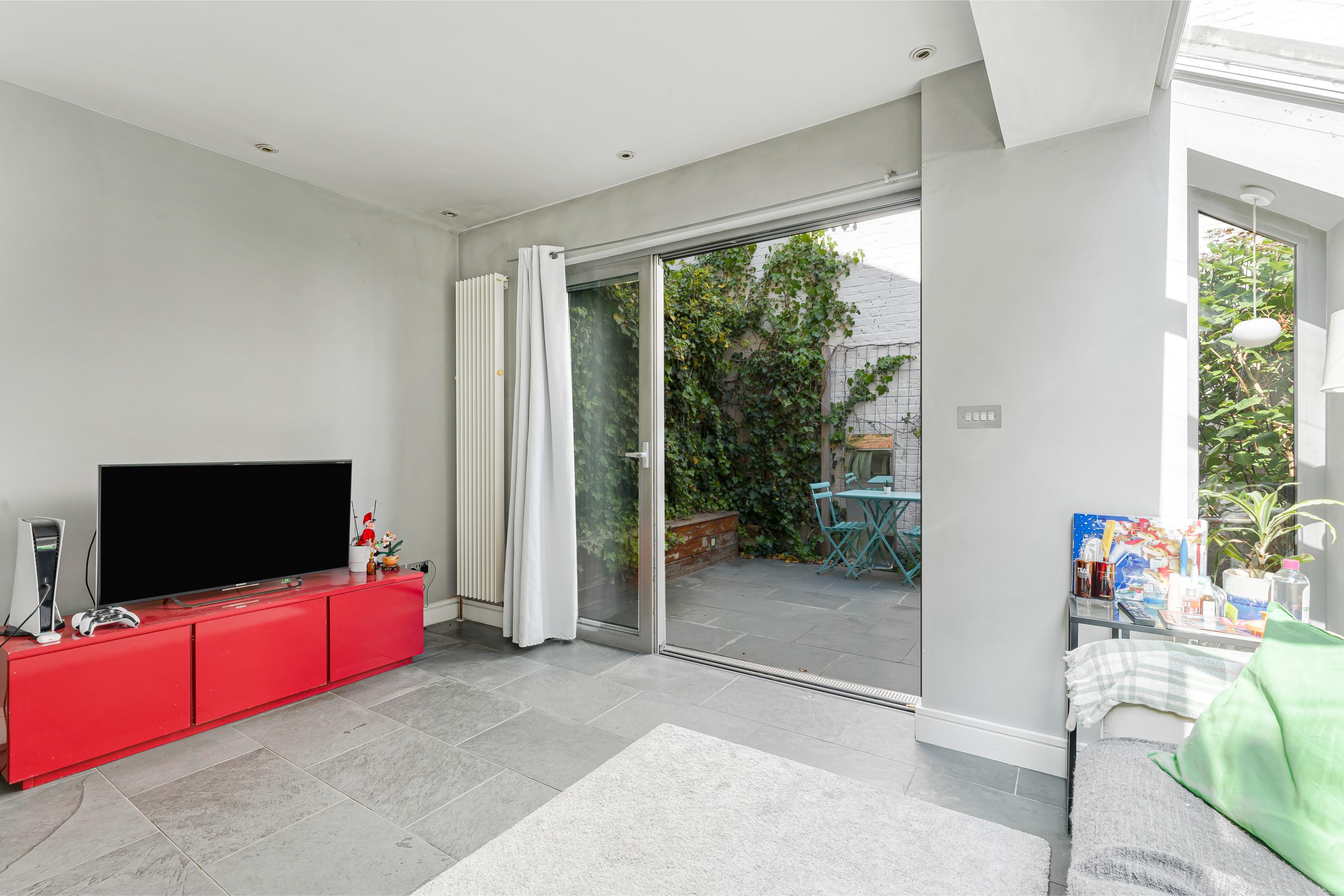 The property comprises two spacious double bedrooms, a modern bathroom, and a well-appointed kitchen. To the rear, a bright and airy reception room opens directly onto a private garden through impressive floor-to-ceiling bi-fold doors, flooding the space with natural light throughout the day.