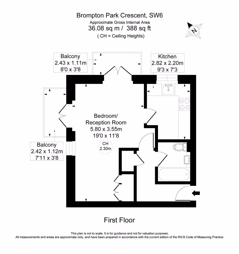 Situated within the desirable Brompton Park Crescent development in the West Brompton area of Fulham, this well-presented studio apartment offers stylish and spacious accommodation, currently arranged as a loosely divided one-bedroom layout.