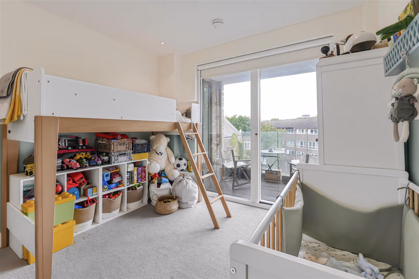The open-plan kitchen and reception room is filled with natural light and opens onto a private balcony, which can also be accessed directly from the main bedroom, perfect for enjoying a quiet moment outdoors.