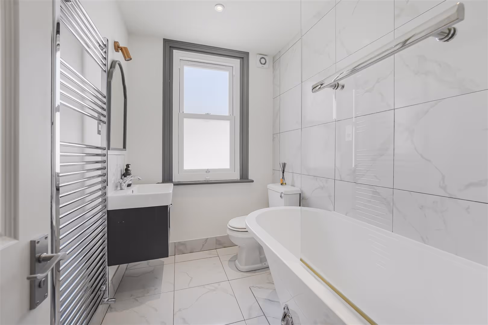 A beautifully refurbished, three double bedroom two bathroom split level apartment on a sought after road in Parsons Green.