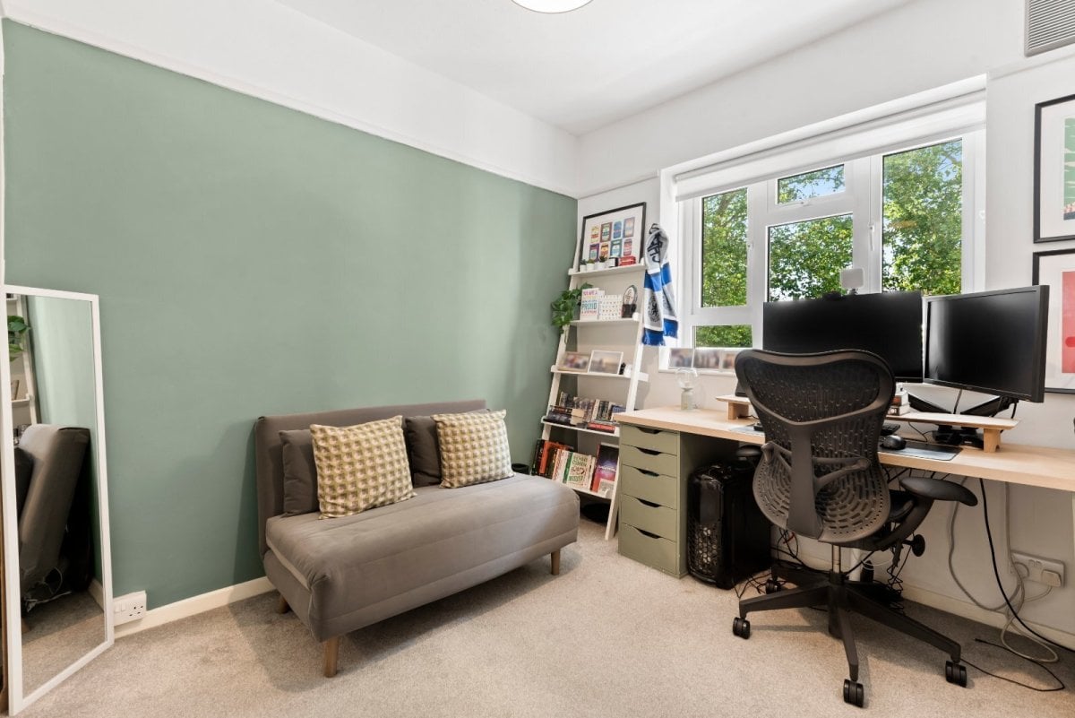 A separate, fully equipped eat-in kitchen, two generous double bedrooms offer flexibility for a range of lifestyles. One bedroom is currently arranged as a home office.