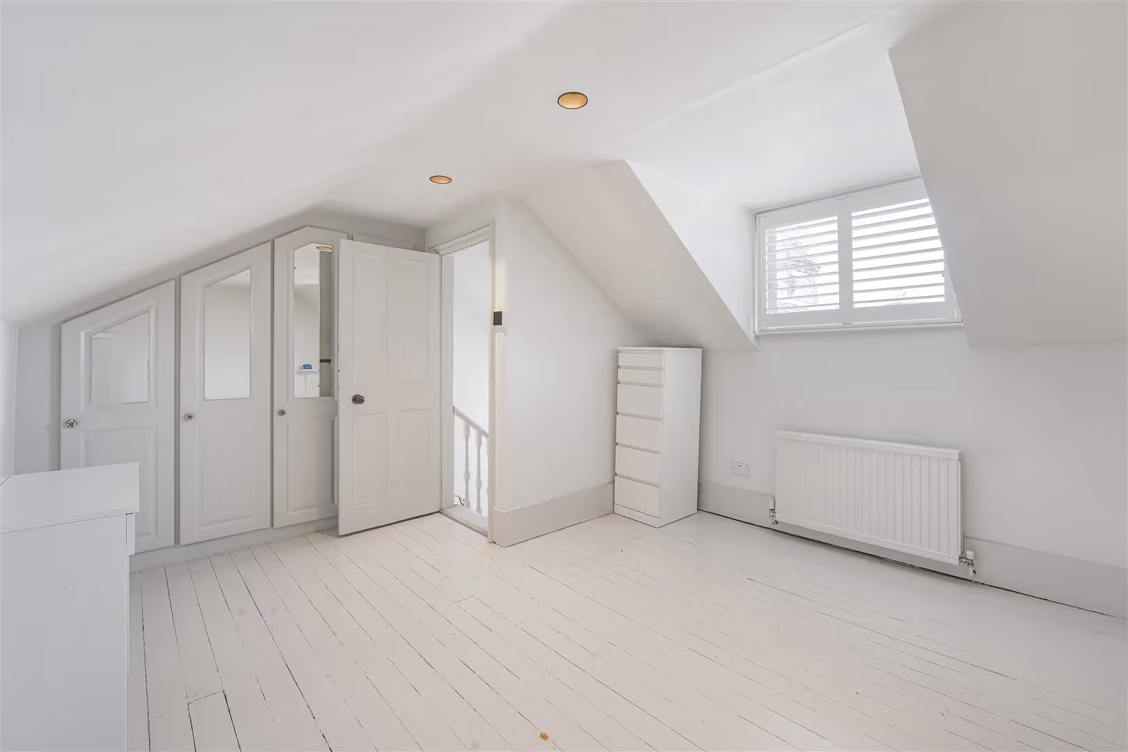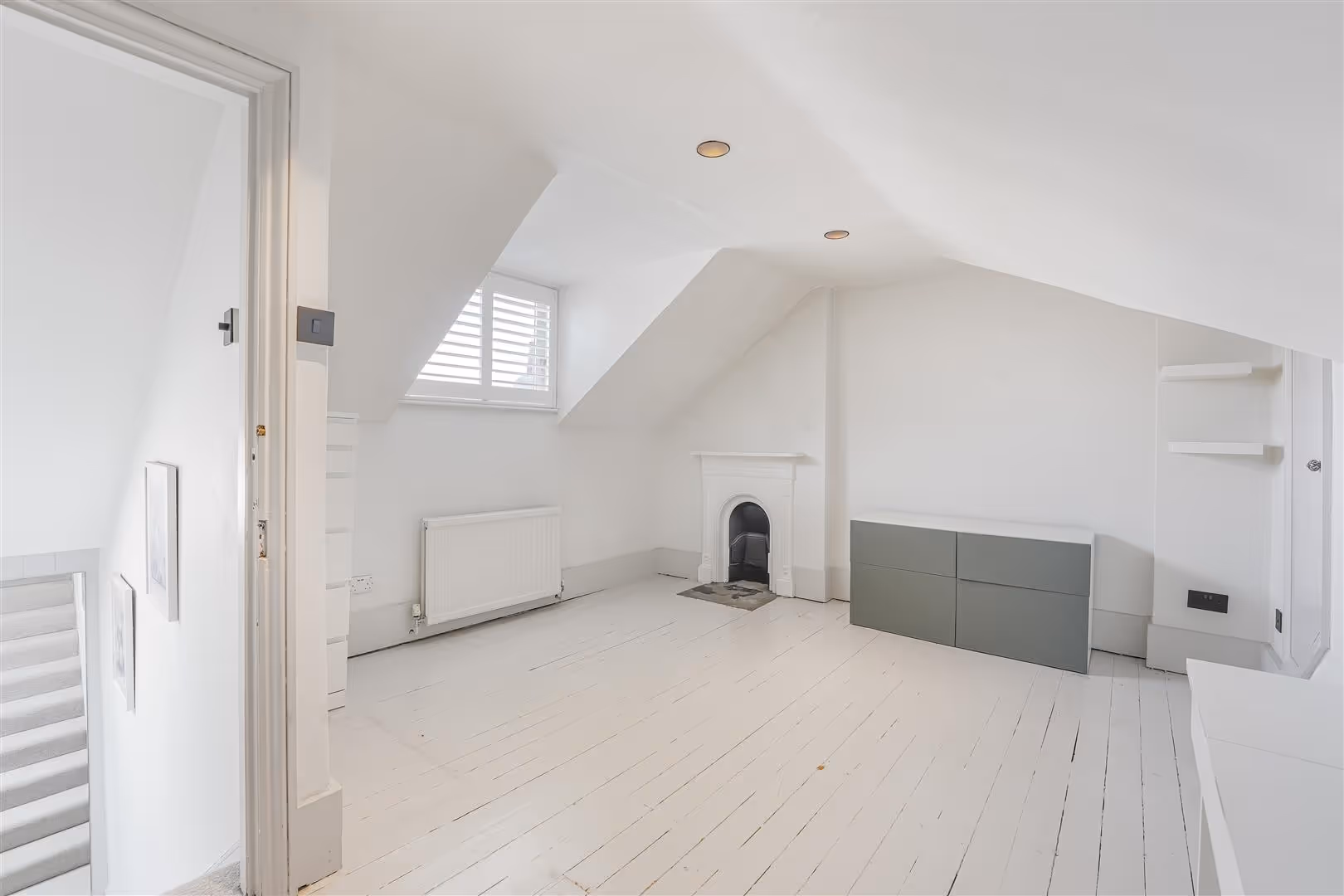 This beautifully proportioned apartment spans two floors and offers an exceptional blend of period charm and modern comfort. Set within a distinguished Lion house on the sought-after northern end of Wandsworth Bridge Road, the property enjoys a prime location just moments from the open green spaces of Eel Brook Common and the excellent transport links of Fulham Broadway.